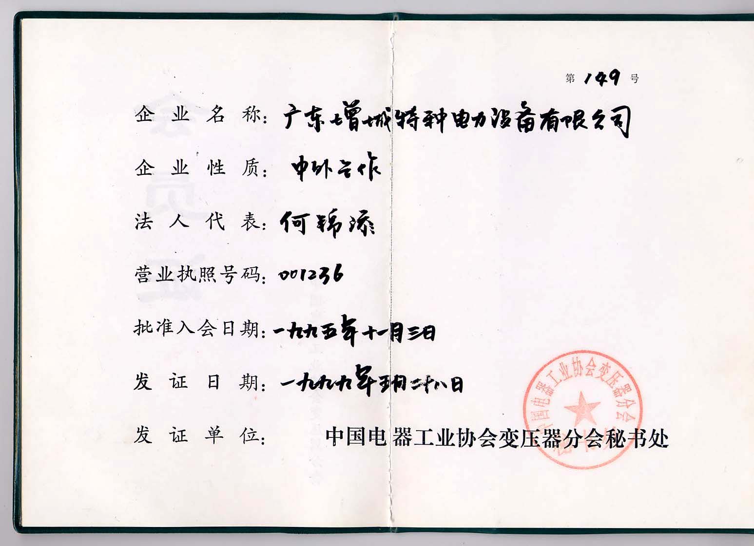 中國電器工業(yè)協(xié)會(huì)變壓器分會(huì)會(huì)員證