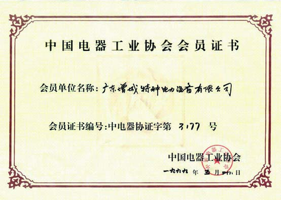中國電器工業(yè)協(xié)會(huì)會(huì)員證書