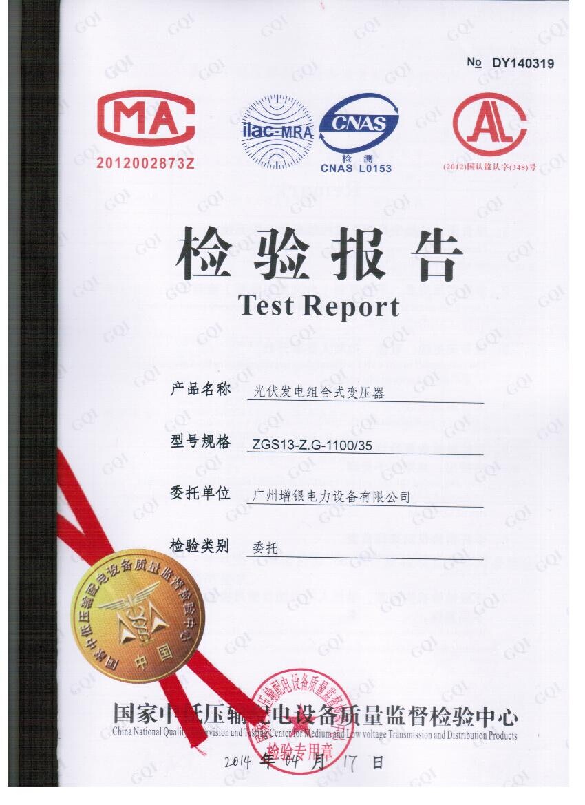 ZGS13-Z.G-1100/35 光伏發(fā)電組合式變壓器檢驗(yàn)報(bào)告
