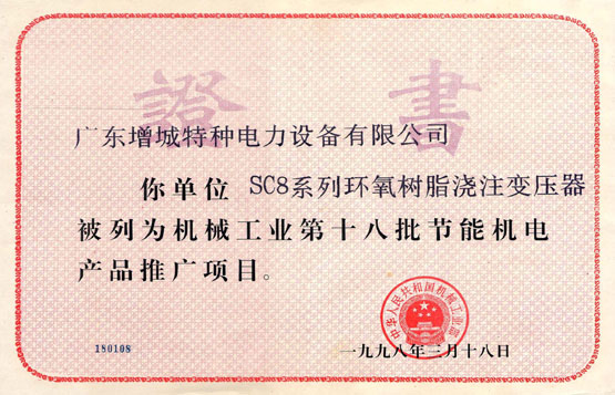 SC系列被列為機(jī)械工業(yè)第十八批節(jié)能產(chǎn)品推廣項(xiàng)目證書