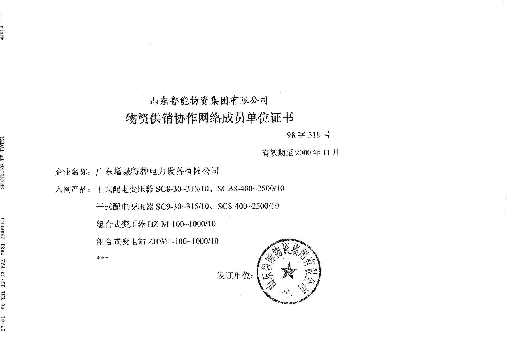 廣州增銀電力設(shè)備有限公司    榮譽(yù)證書(shū)