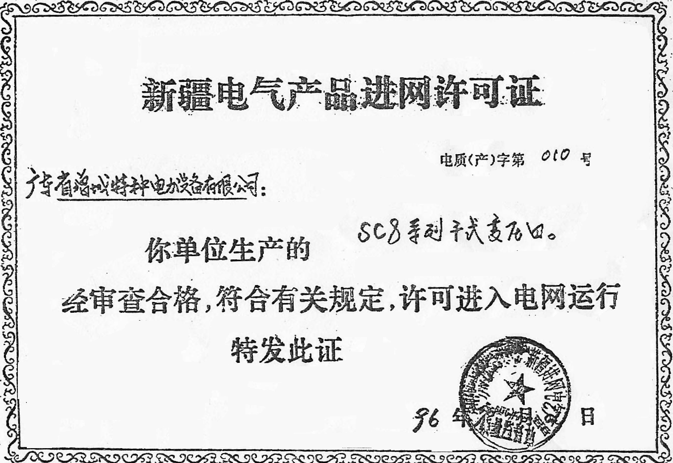 新疆電氣產(chǎn)品進(jìn)網(wǎng)許可證