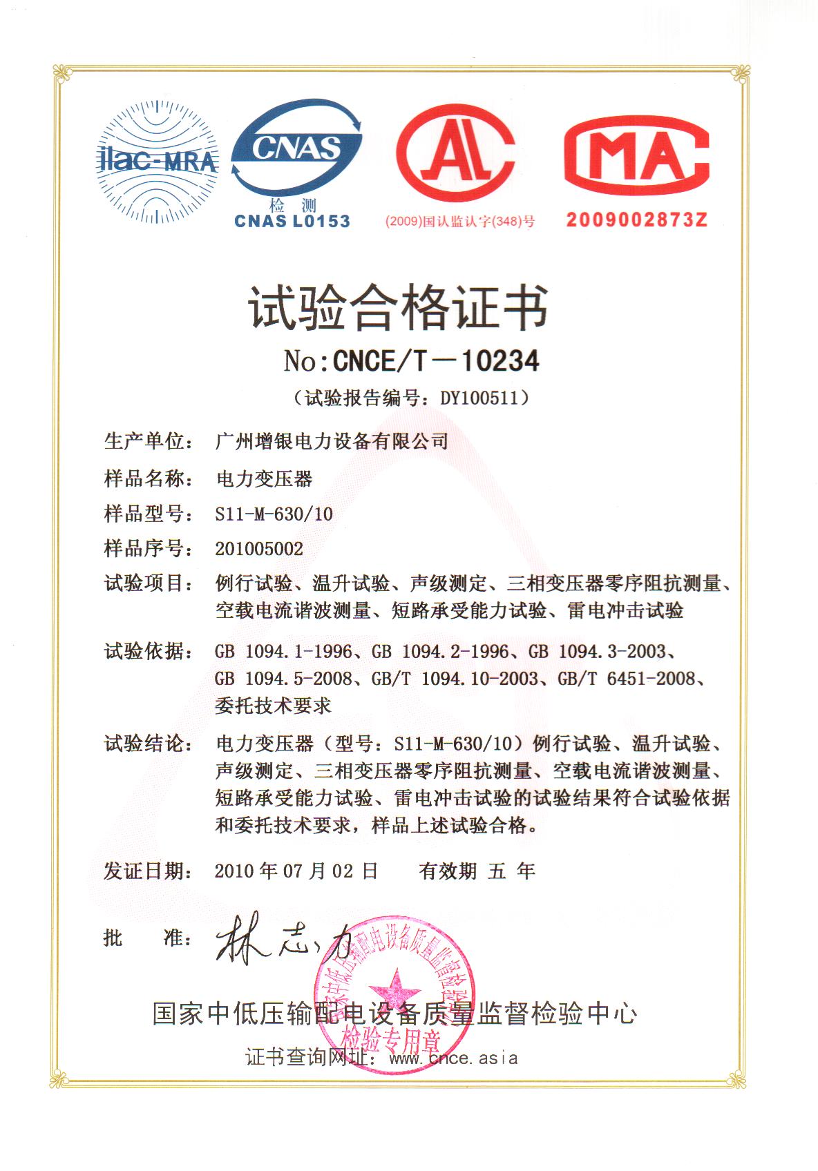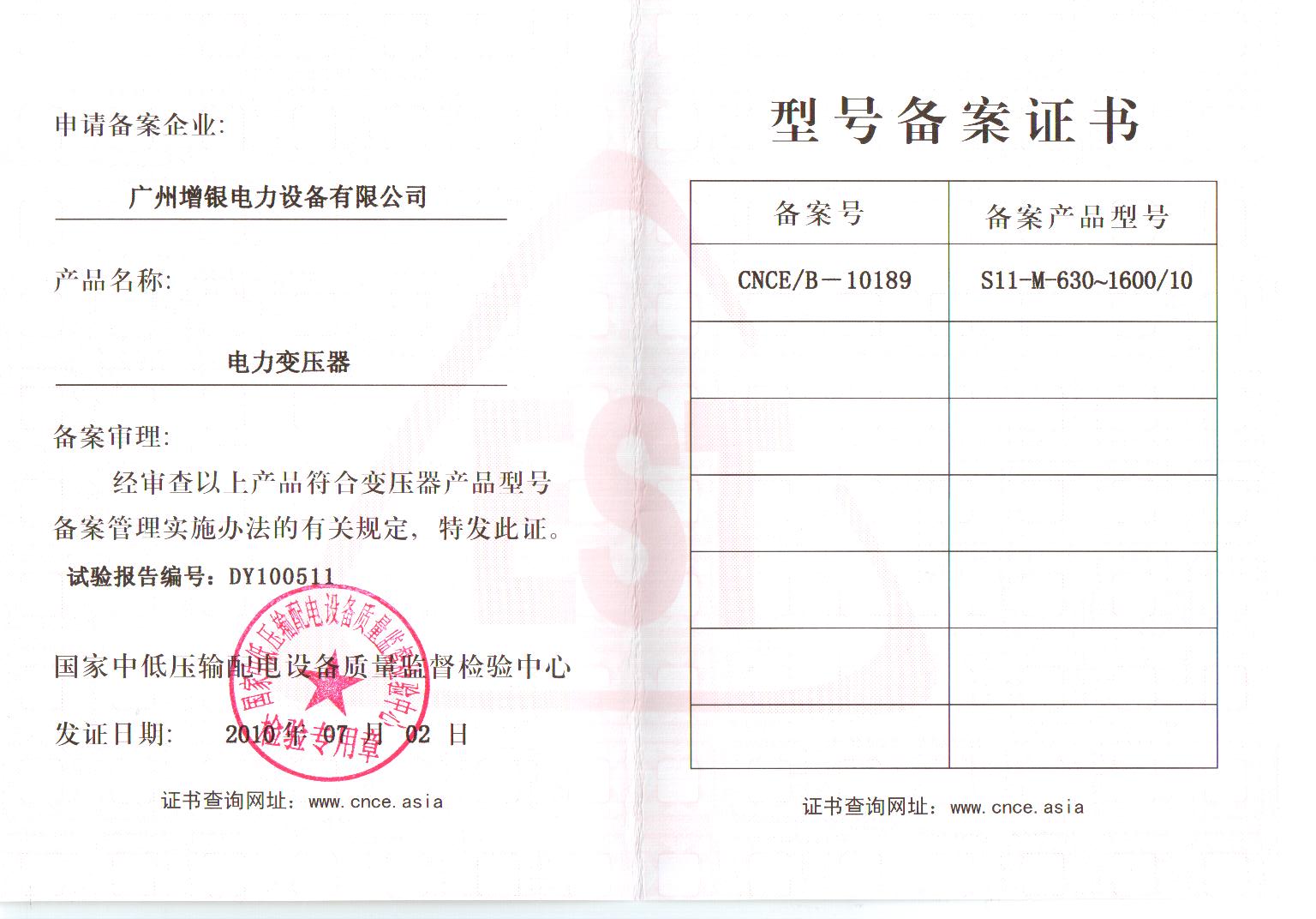 廣州增銀電力設(shè)備有限公司    產(chǎn)品資質(zhì)