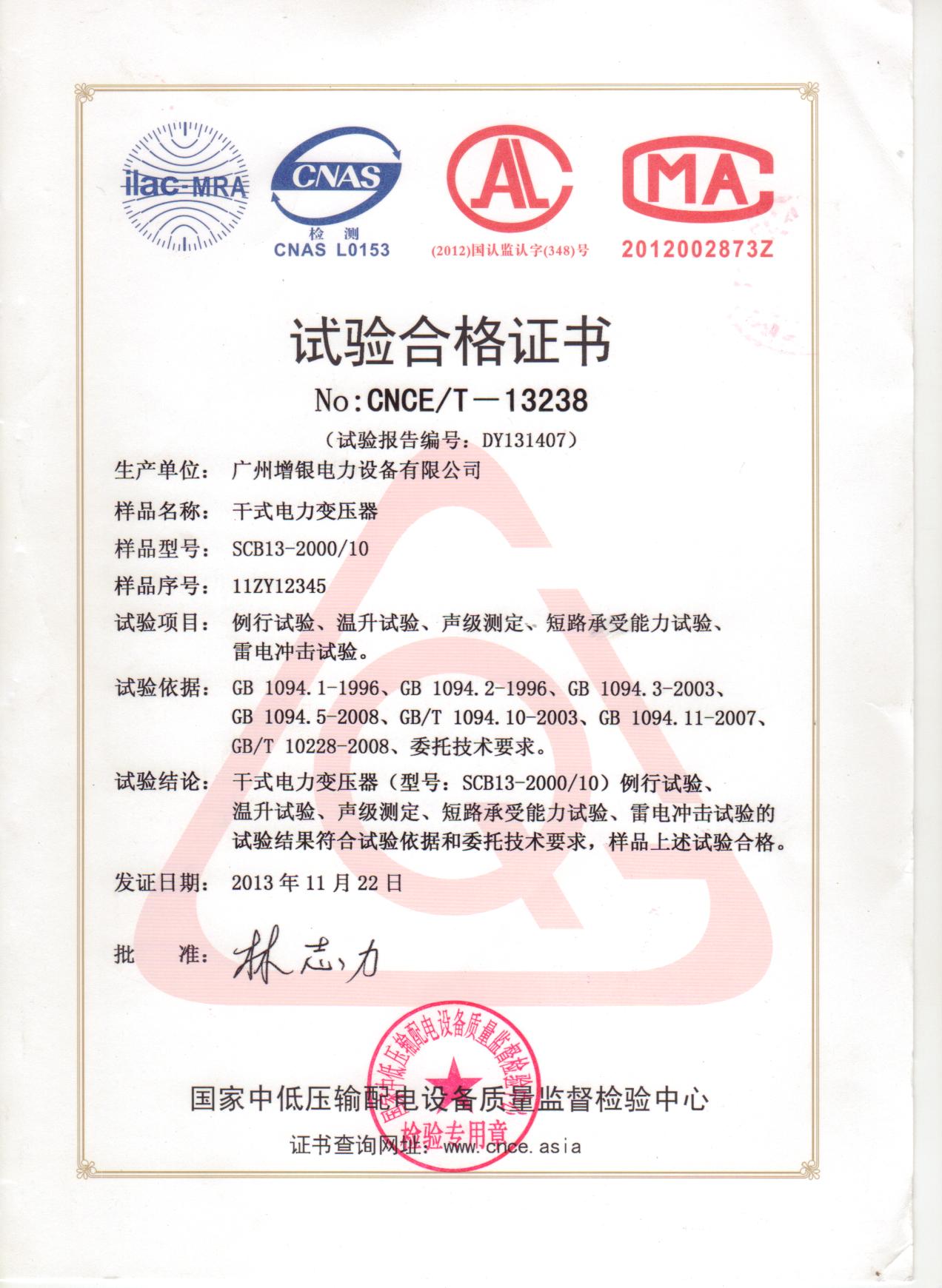 廣州增銀電力設(shè)備有限公司    產(chǎn)品資質(zhì)