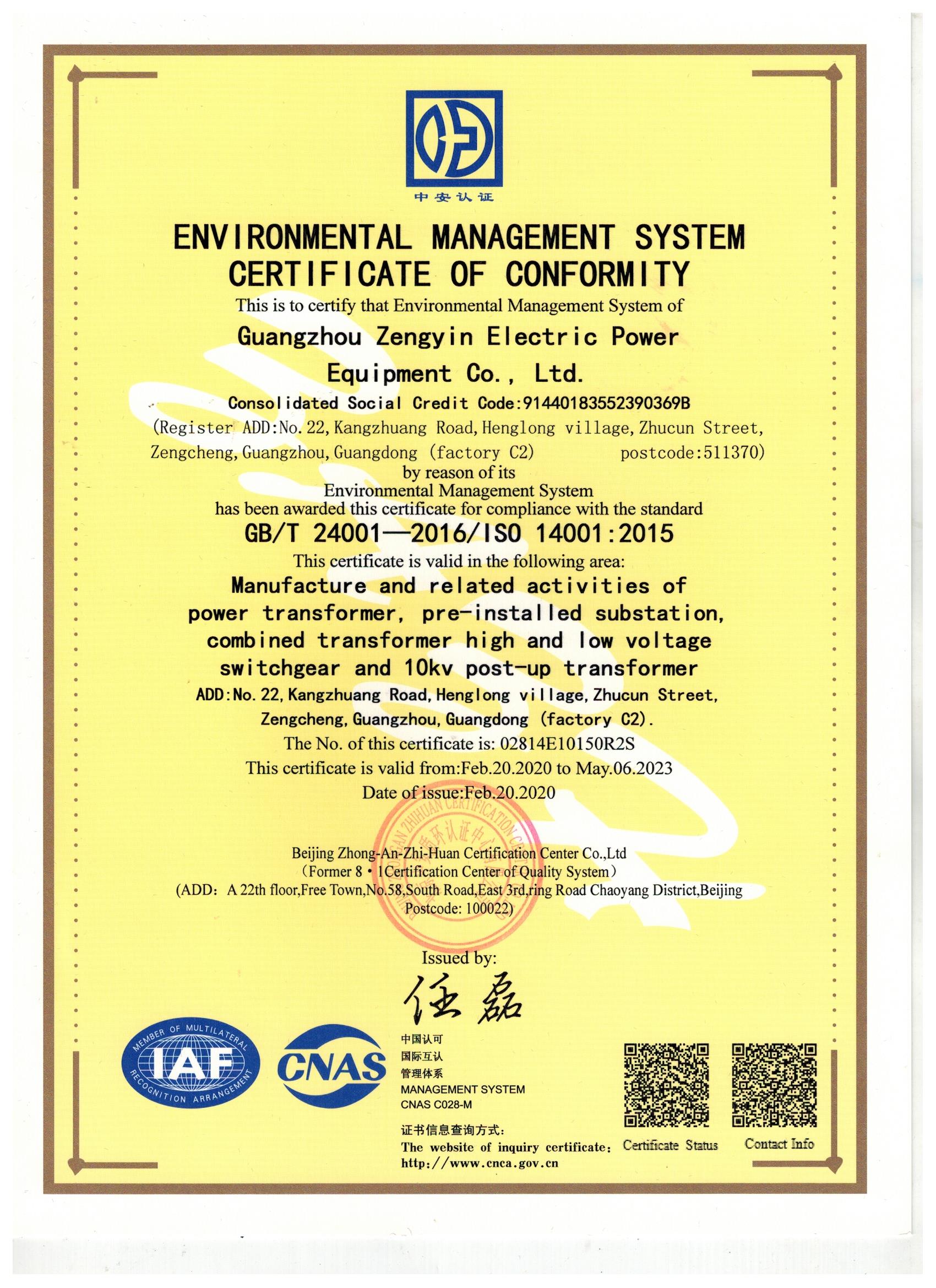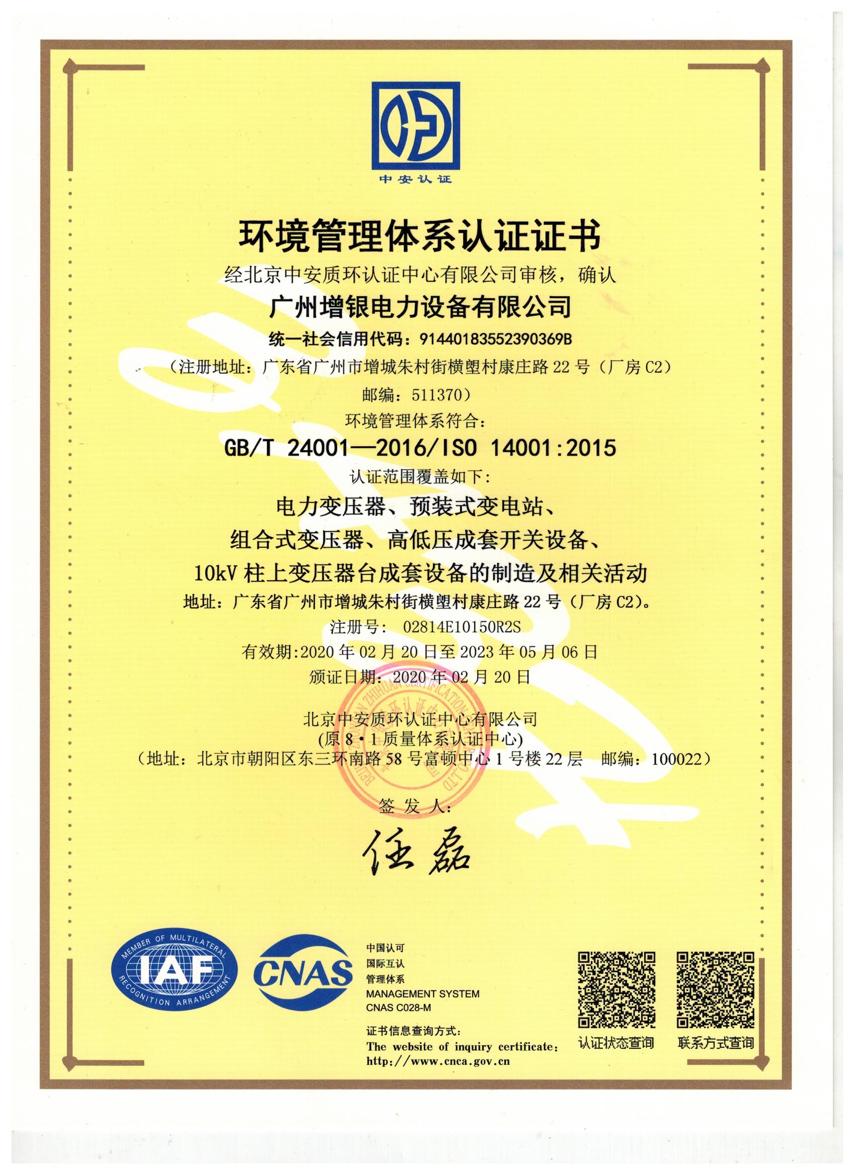 ISO14001環(huán)境管理體系認(rèn)證證書