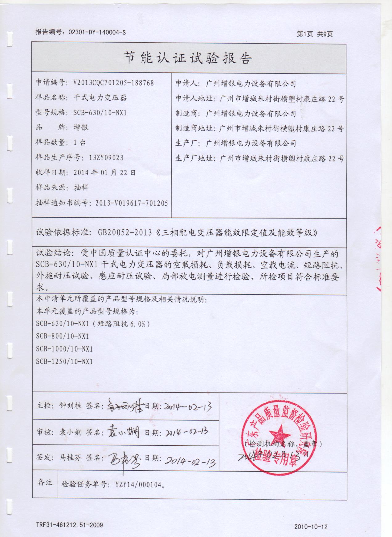 廣州增銀電力設(shè)備有限公司    產(chǎn)品資質(zhì)
