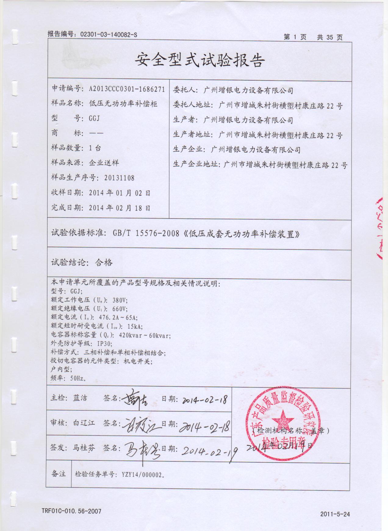 廣州增銀電力設(shè)備有限公司    產(chǎn)品資質(zhì)