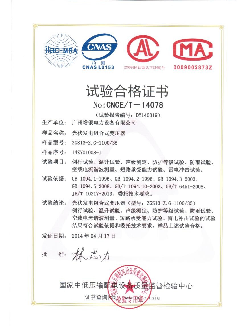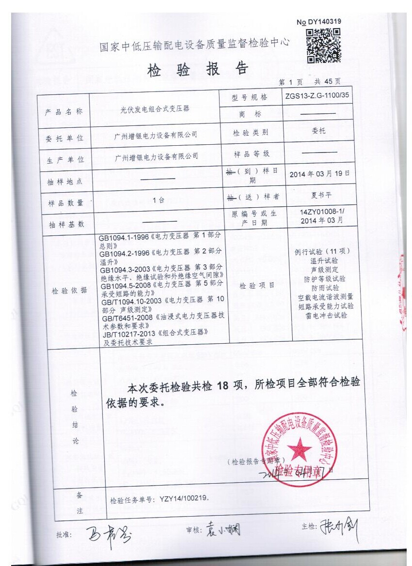 廣州增銀電力設(shè)備有限公司    產(chǎn)品資質(zhì)