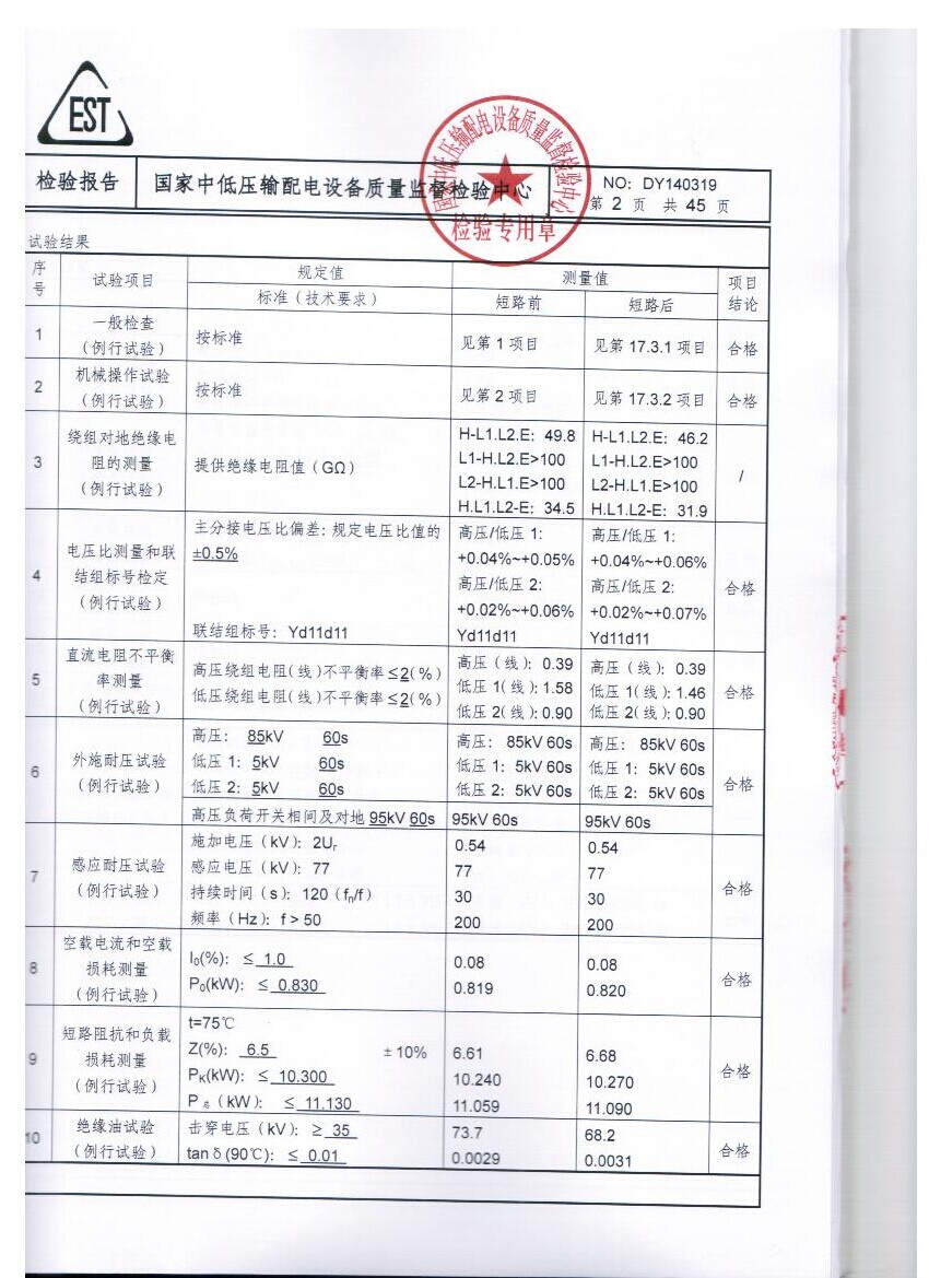 ZGS13-Z.G-1100/35 光伏發(fā)電組合式變壓器檢驗報告