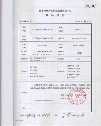 廣州增銀電力設備有限公司    產(chǎn)品資質(zhì)
