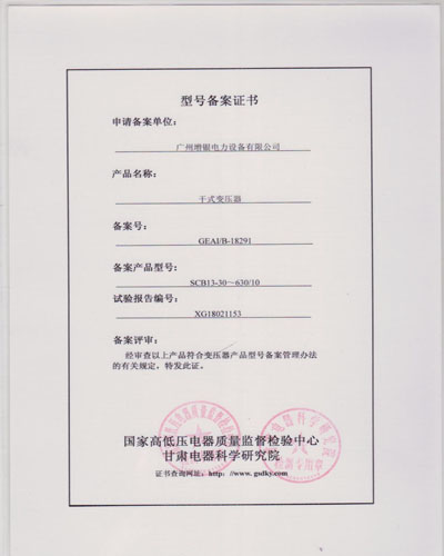 廣州增銀電力設備有限公司    產(chǎn)品資質(zhì)
